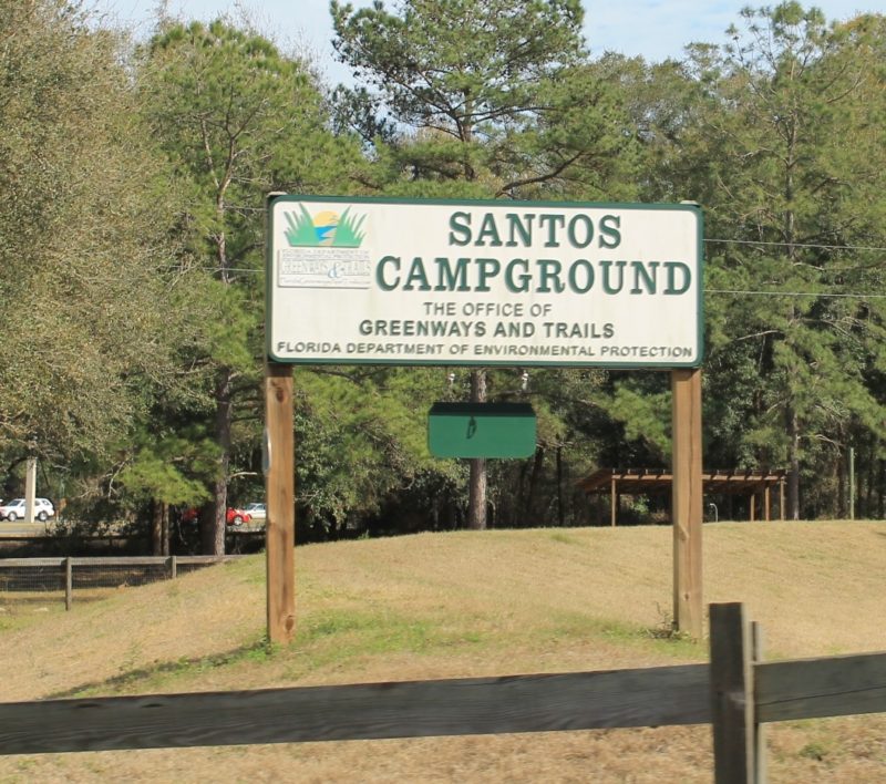 Santos Campground is located on the Marjorie Harris Carr Cross Florida Greenway. This portion of the greenway is best known for mountain bike trails. Over 30 miles of trails with three levels of difficulty are available to accommodate beginners to experts. The Santos trailhead draws riders from all over the state and country to experience what many call the best bike trails in Florida. In addition to bicycle trails, the Florida Trail Association hiking trail and equestrian and wagon trails are marked and maintained between Santos and County Road 475A.