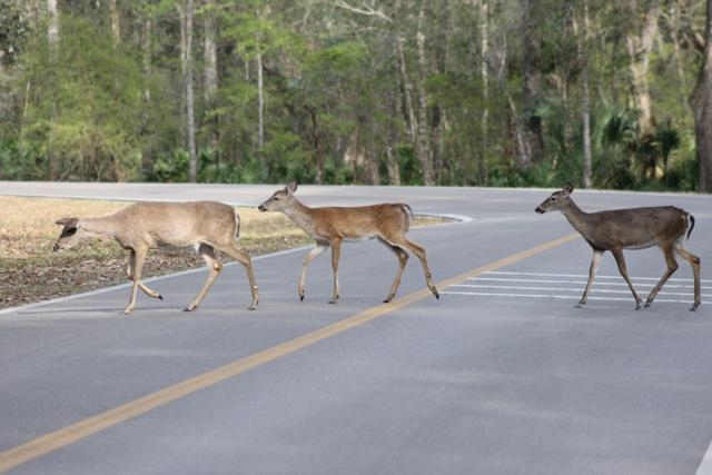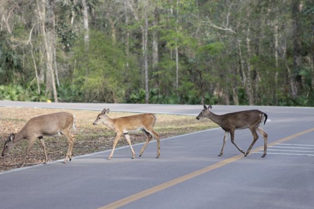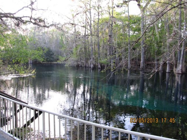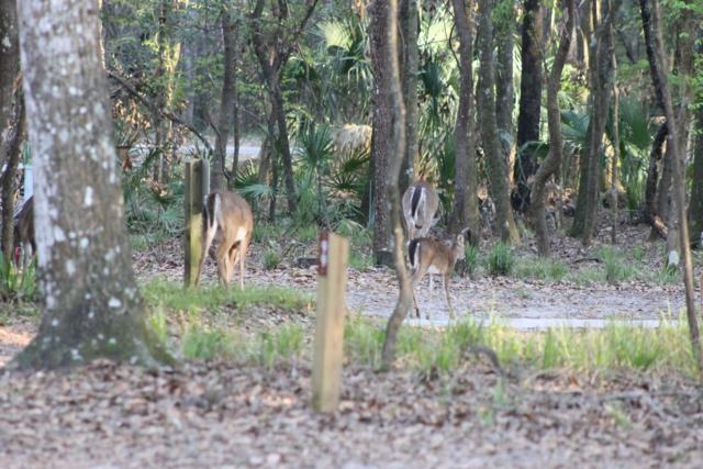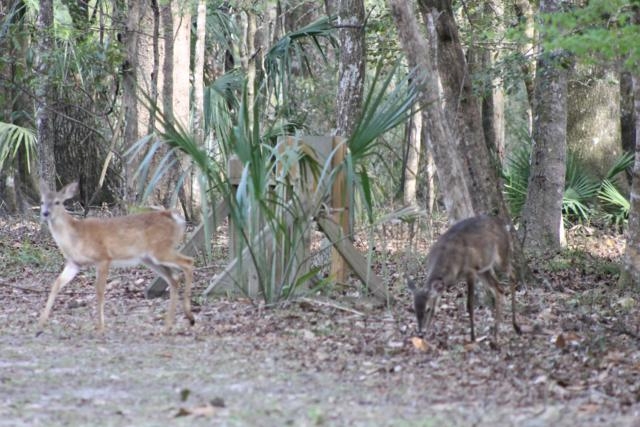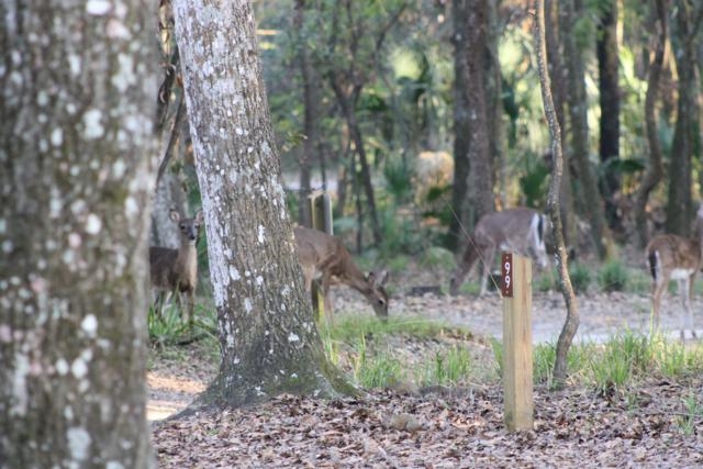 Since we had to head back north we cancelled our reservations with Hillsborough State Park and made one at Manatee Springs State Park for 2 weeks. We were hoping to see the manatees in their winter residence and we did almost every day we were there. They seem to head into the springs area from the river when the temperature falls below 50 or so and spend the night. The first couple of days we saw them in the crystal clear blue water of the springs area as well as cruising and munching on whatever plant life they could reach on the way in from the river. Sadly, near the end of our stay the river rose about 2 feet and sent cloudy silt all the way to the springs so that we couldn’t see all that much after that. We did get a few good pictures of the lumbering manatees as well as the very friendly deer family that roams all around the campgrounds, picnic areas and trails whether the people are there or not. Below are a few of the pictures we have taken of the local residents of the park.