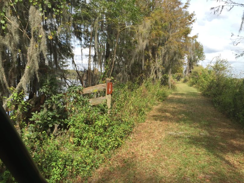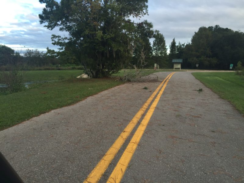 One month at Alligator Lake Recreation Area here in Lake City, Florida has started out pretty good. We are still trying to establish a good routine that works for us and our volunteer coordinator. It’s not a hard gig by any means and the people have been extremely nice. The coordinator has been very open about some of the supplies we have asked for to keep doing our jobs as we think it needs to be done. For instance, we asked for a small blower to keep the rental pavilion clean between users, a nice long water hose and roller cart to hold it on so that we can keep the bathrooms and pavilion’s harder to reach areas cleaned and we asked for a battery powered inside light for our Gator so that we can see what we are doing at night while we are emptying out the trash barrels. We usually start about 30 minutes before closing to check the trash barrels, pick up any trash we come across and, hopefully, encourage our visitors to start packing up and head towards the gate. We also have to check the outer packing lot for hikers on the trails. For some reason people come into the park close to closing and start down the trails that are clearly marked as longer than the time they actually have to complete it.