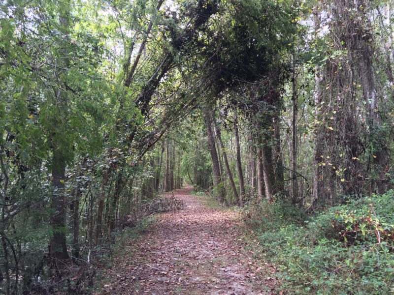 We have been toodling around on the Gator getting to know the trails around here. The park personnel has kept them and still keep them well. We just have to pick up the drink bottles, miscellaneous bits of trash and then empty the little trash bins that are nailed to posts along the way. It’s pretty here and we do have a nice view. The coordinator has even agreed to check on the possibility of adding a 220 electric socket in the storage building we get to use so that we can add a washer/dryer. Possibly even a refrigerator.